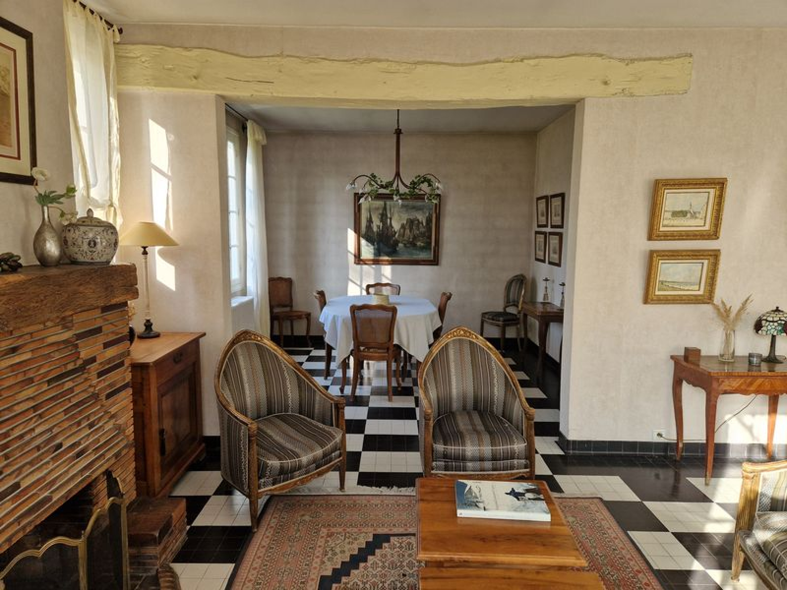 Elle offre au rez de chaussée: entrée, séjour double (exposé sud-est et sud-ouest) avec cheminée et accès verrière, bureau, cuisine équipée, 3 chambres, salle de bains avec douche et baignoire, WC.