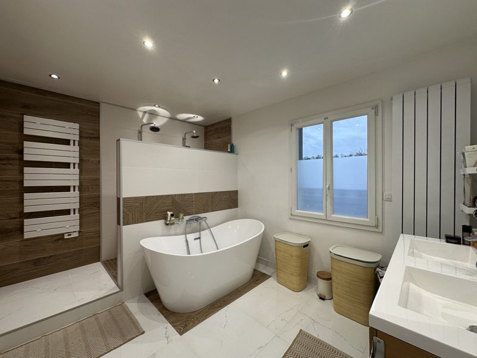 - Une salle de bain moderne avec une double douche à l’italienne