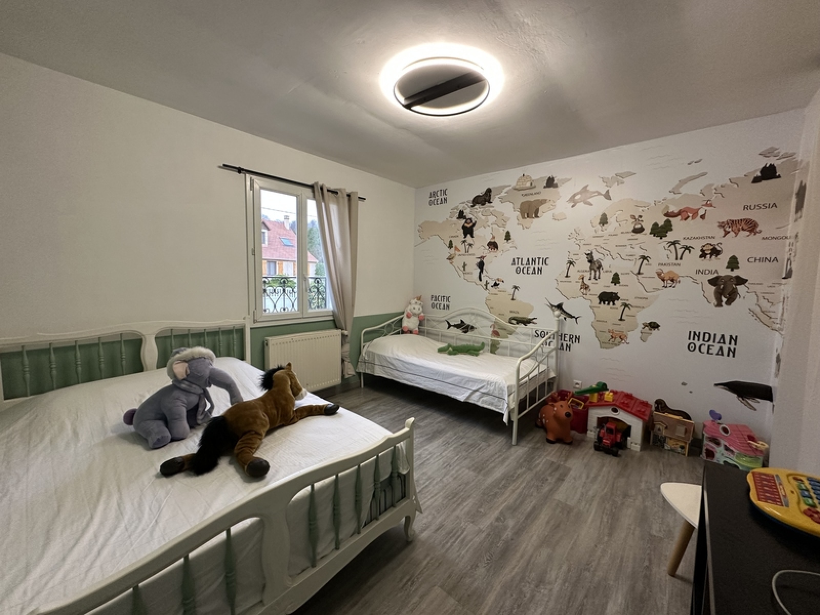 Au dernier étage, un second palier mène à deux grandes chambres lumineuses.